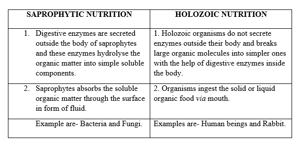 Short Answer Question List Two Differences Between Holozoic Nutrition And Saprophytic Nutrition Give Two Examples Of Each Of These Two Types Of Nutrition Snapsolve